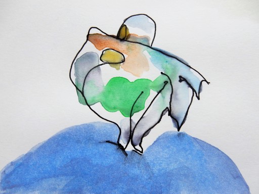 Serie met als inspiratiebron mijn vader. Dit is een tekening met viltstift en aquarel op papier, formaat 11 bij 15 cm.